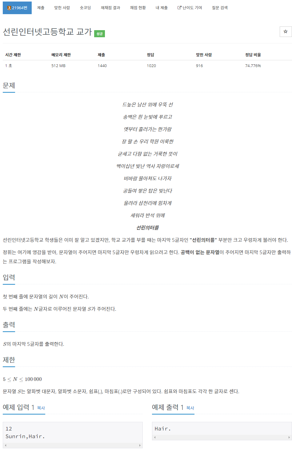 2. 뒤에서부터 5글자를 출력해주면 된다! substring을 써도 되고, character 단위로 확인해서 하나하나 출력해줘도 된다(당연히 후자가 더 효율적이긴하지만 이 의미에서 의미가 있는 수준은 아니다.)