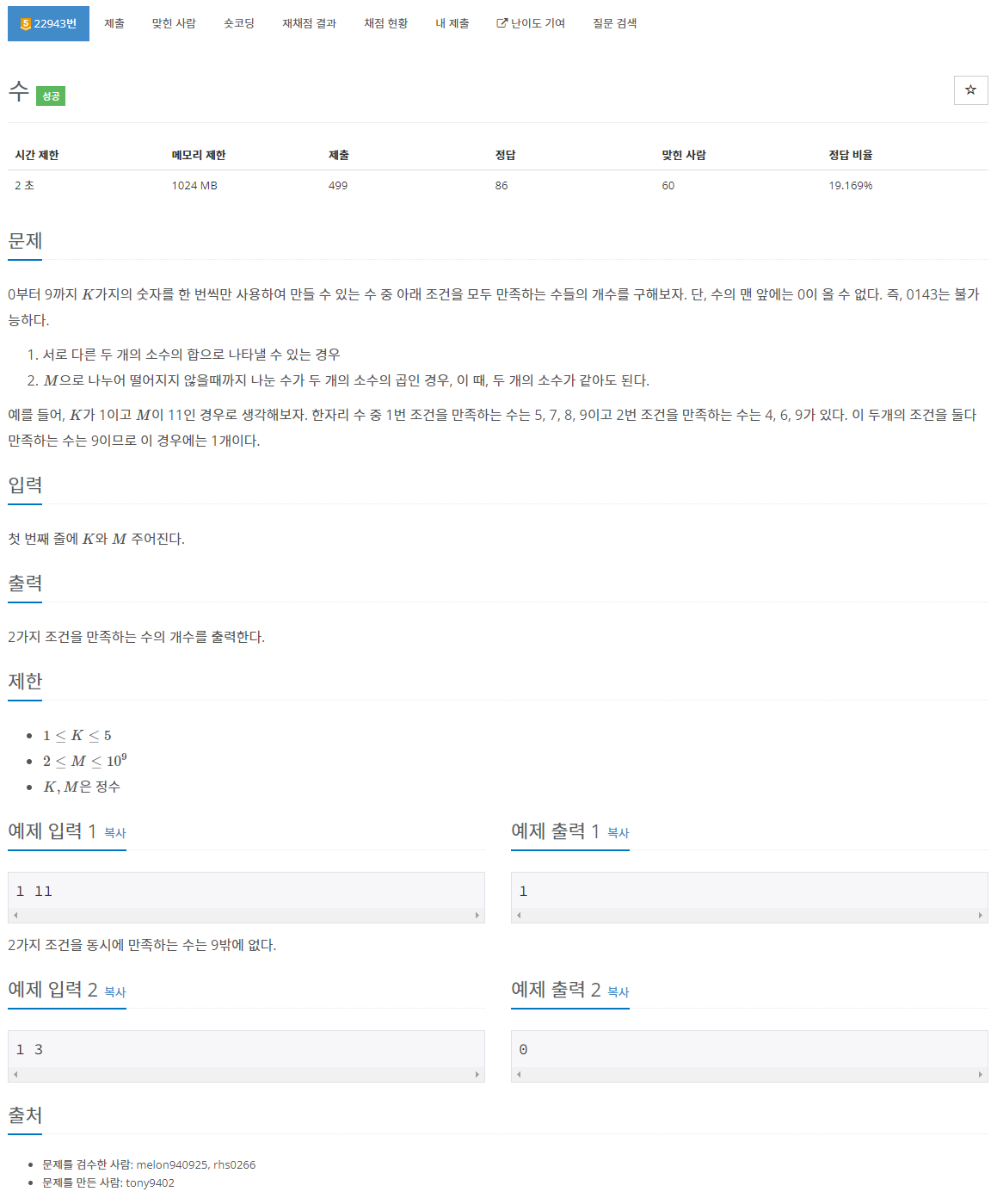 문제 : boj22943
