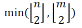 각 문자를 만드는데에 n이 2개, m이 2개 필요하다. 따라서 중요한건 둘 중 더 작은 수치이다. 만약 n이 4, m이 1000000 이라고 한다면 결국 n은 4/2개로 2개까지 가능한거니, m이 얼마나 많던지 상관이 없게 되는 것이다. 따라서 이하의 수식을 구해주면 된다.