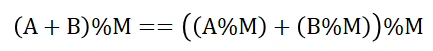 MOD값의 경우엔 이하의 두 수식에 의해 매번 나머지를 구해도 결과를 구할 때 문제되는 부분은 없다.