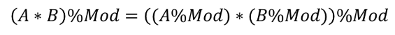 MOD값의 경우엔 이하의 두 수식에 의해 매번 나머지를 구해도 결과를 구할 때 문제되는 부분은 없다.