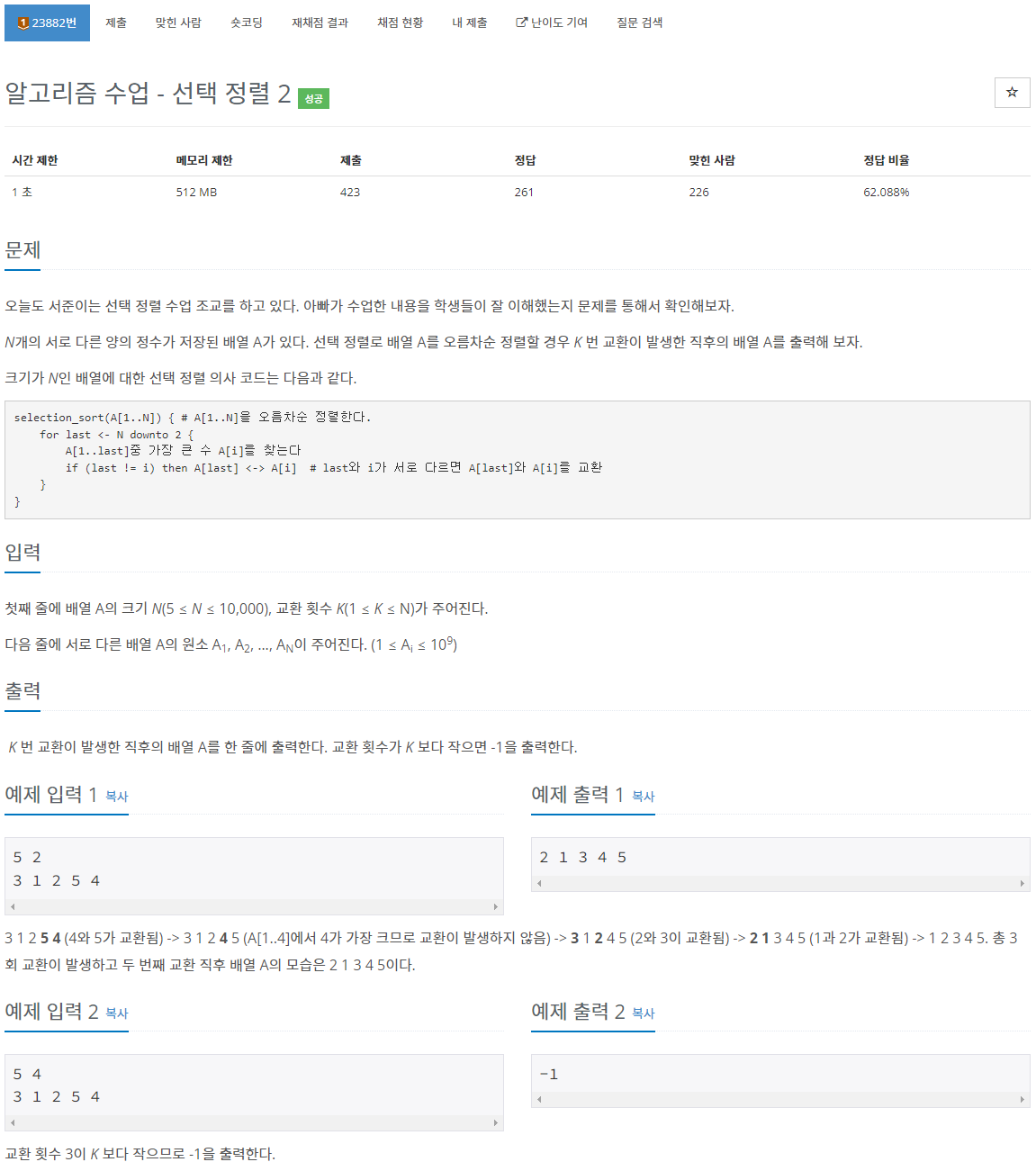 문제 : boj23882