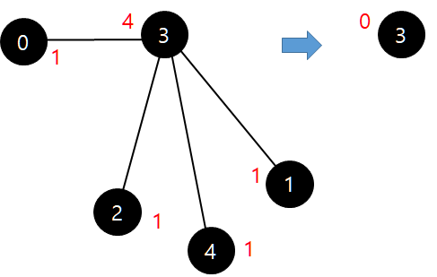 그래프의 줄기는 정점이 1개만 남았어도 가능하다. 즉, 아래와 같은 경우, '3'이 답이다.