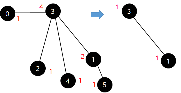 2.2 제거할 때, 그 정점과 간선으로 연결된 정점에 대해 연결된 간선의 수를 줄여준다.