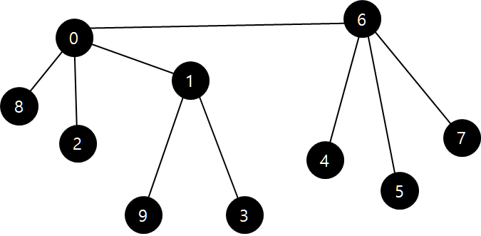 한 번 삭제된 후엔 아래와 같이 된다. 그리고 그래프의 줄기가 남게되므로 종료된다. 그래프의 줄기만 남는 경우는 모든 정점들이 연결된 간선이 2 이하일 때 이다.