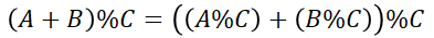 내 기본 아이디어는 나머지 연산의 분배법칙을 활용하는 것이었다. 나머지 연산의 경우 다음의 분배법칙을 따른다.