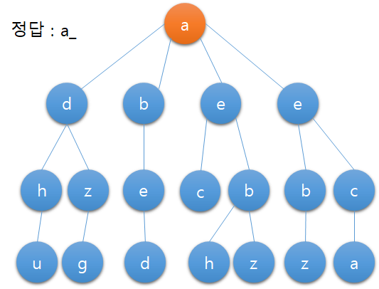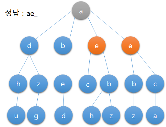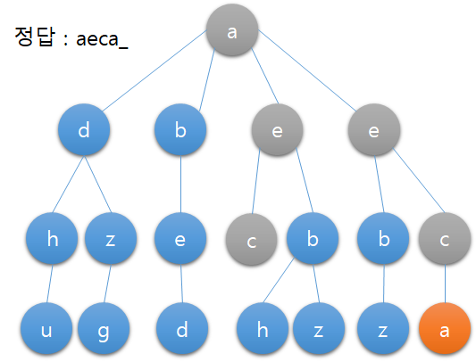 - 각 트리 깊이마다 사전상 마지막에 오는 문자를 택하는 규칙을 세워야 한다.