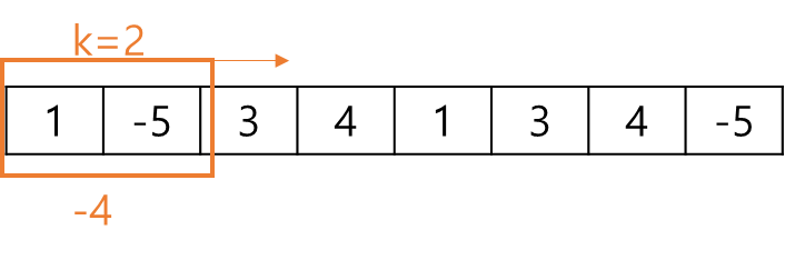 K크기의 윈도우를 배열의 처음부터 끝까지 진행하면서 윈도우 내의 수의 합을 구한다고 생각해보자.