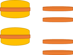 햄버거 하나를 만들기 위해서는 A가 2개씩, B가 1개씩 필요하다. 우선 A=5에 대해 2개씩 짝지어보면 아래와 같다. 2개씩 짝지어지고 1개 남는건 버려진다.