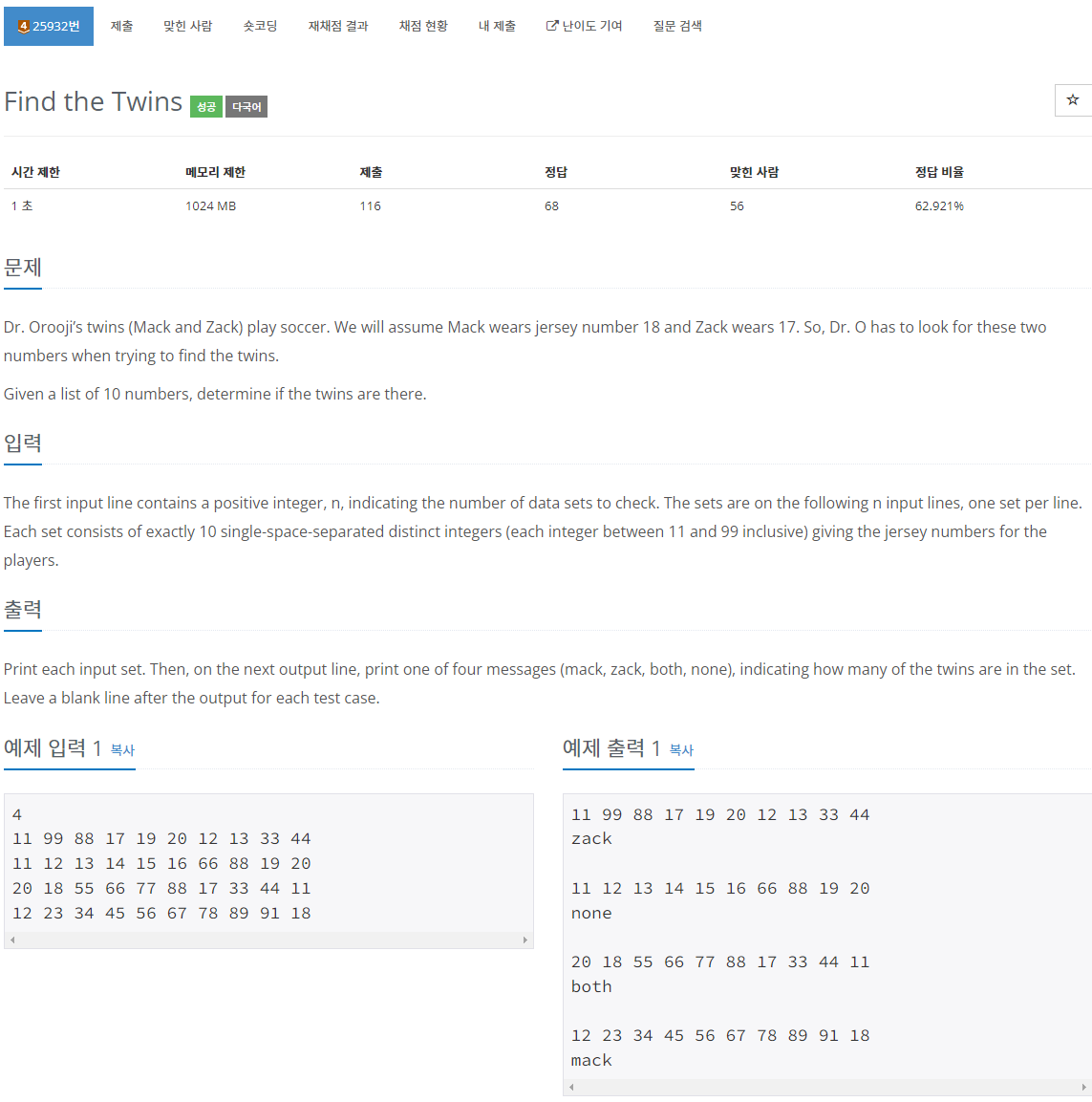 풀게된 계기는 나온지 얼마 안된 문제라 정답률이 100%였다. 100%로 냅두긴 불-편 했으므로 정답률을 떨어뜨리기 위해 풀었다(?). (팁 : 백준에서는 그냥 틀리기만 해서는 정답 비율에 영향을 안끼친다. 틀린 후 맞아야 성공률이 내려간다!)