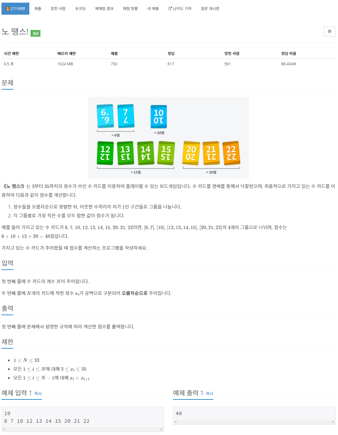 그럼 arr[x]에서 'x=1부터 배열끝까지' 차례대로 보면서, arr[x-1] != arr[x]-1 이라면 연속된 그룹의 시작점에 해당하게 된다. (0을 추가한 것은, arr[x]는 최소 3, 최대 35 이므로 0이면 무조건 연속되지 않기 때문이다.)