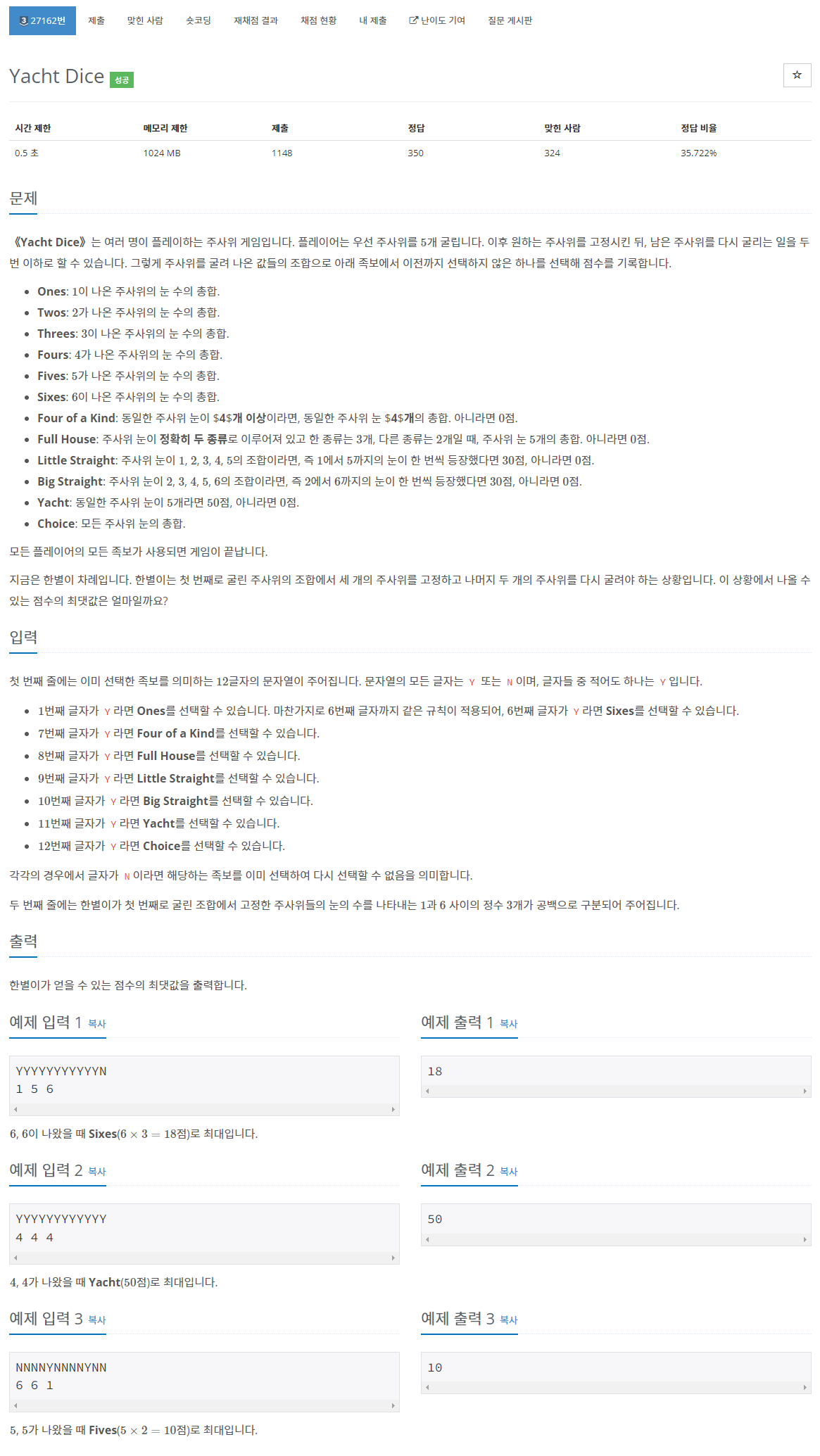 - Yacht : arr의 눈이 모두 같다면 50점