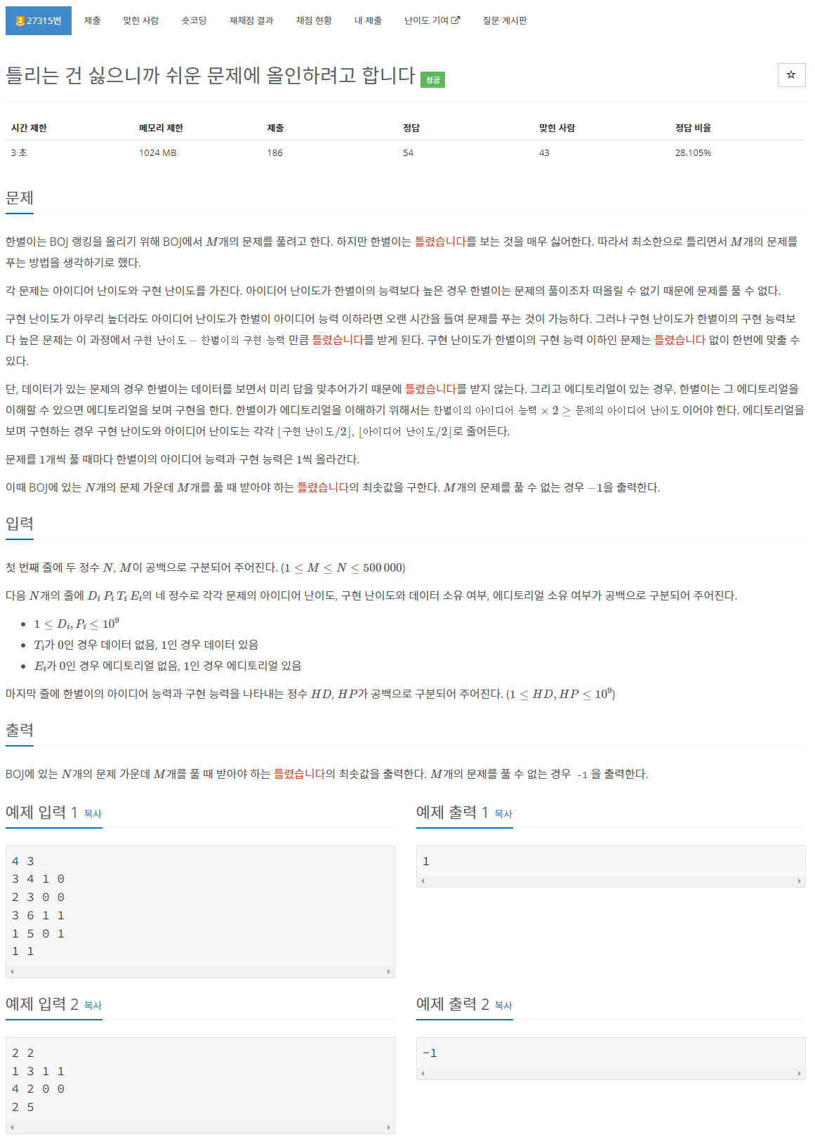 문제 : boj27315
