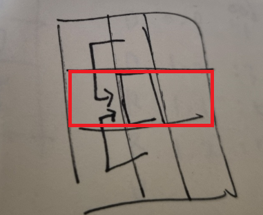 풀고난 후 'pill27211'님의 코드를 보고 어차피 저기서 한칸 더 가면 아래처럼 3칸을 봐야하는 셈이라, 거리까진 필요없고 들어온 방향까지만 확인하면 된다는걸 깨달았다. 이걸로 -280ms !