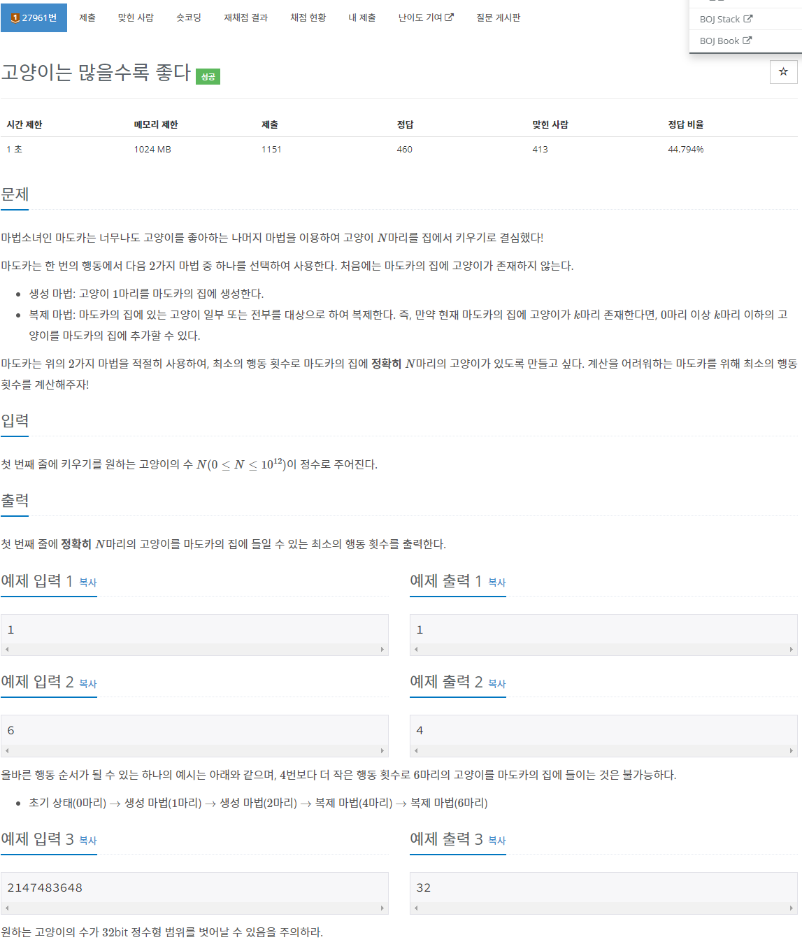 문제 : boj27961