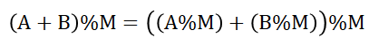 그렇다면 위에서 본 $s1+f1*t-s2$ 에서 s1-s2는 고정값이니 제외하고 생각해보면 결국 $f1$, $f1+f1$, $f1+f1+f1$... 처럼 증가하는 값이 $f2$로 나누어떨어지냐는 건데, 나머지 연산의 성질에 따라 당연하게도 나눈 나머지는 $f2$ 이하이다. 또한 나머지 연산의 다음과 같은 규칙에 따라
