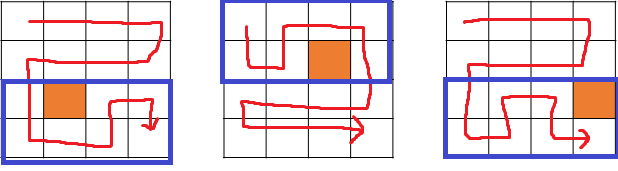 2. 우선 행을 기준으로 선택한 지점이 포함된 2줄짜리 행이 오기 전까지는 우측으로 쭉 -> 아래로 한칸 -> 좌측으로 쭉을 진행한다.
