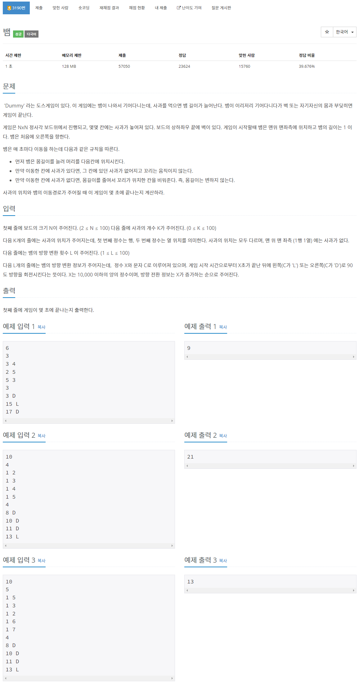 문제 : boj3190