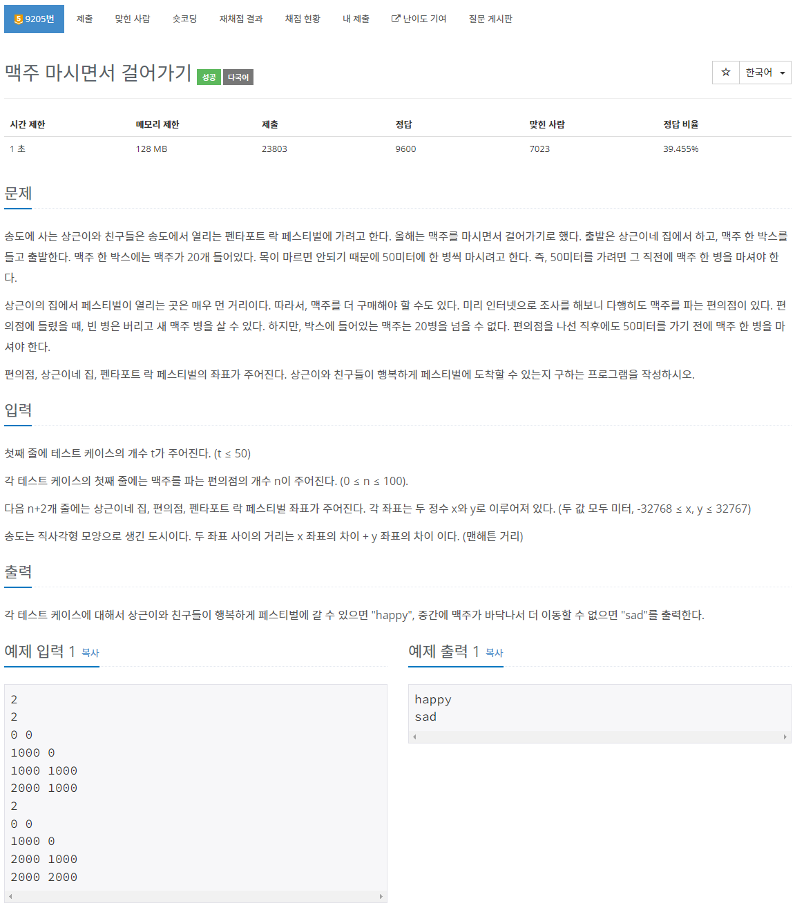 - 데이터를 원하는 형태로 바꾸는 사전작업이 좀 필요하다. 그것만 하면 그냥 가중치가 동일한 정점과 간선이 주어질 때 특정 지점부터 특정 지점까지 도달 가능하는지만 판단하면 되므로, bfs나 dfs나 분리집합이나 아무거나 써서 찾아주면 된다.