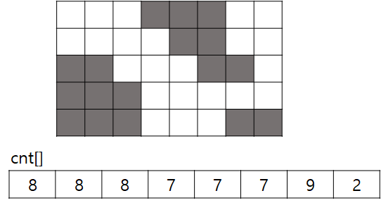 그럼 이제 cnt[] 에 값을 어떻게 채울 수 있을지 생각해보자.