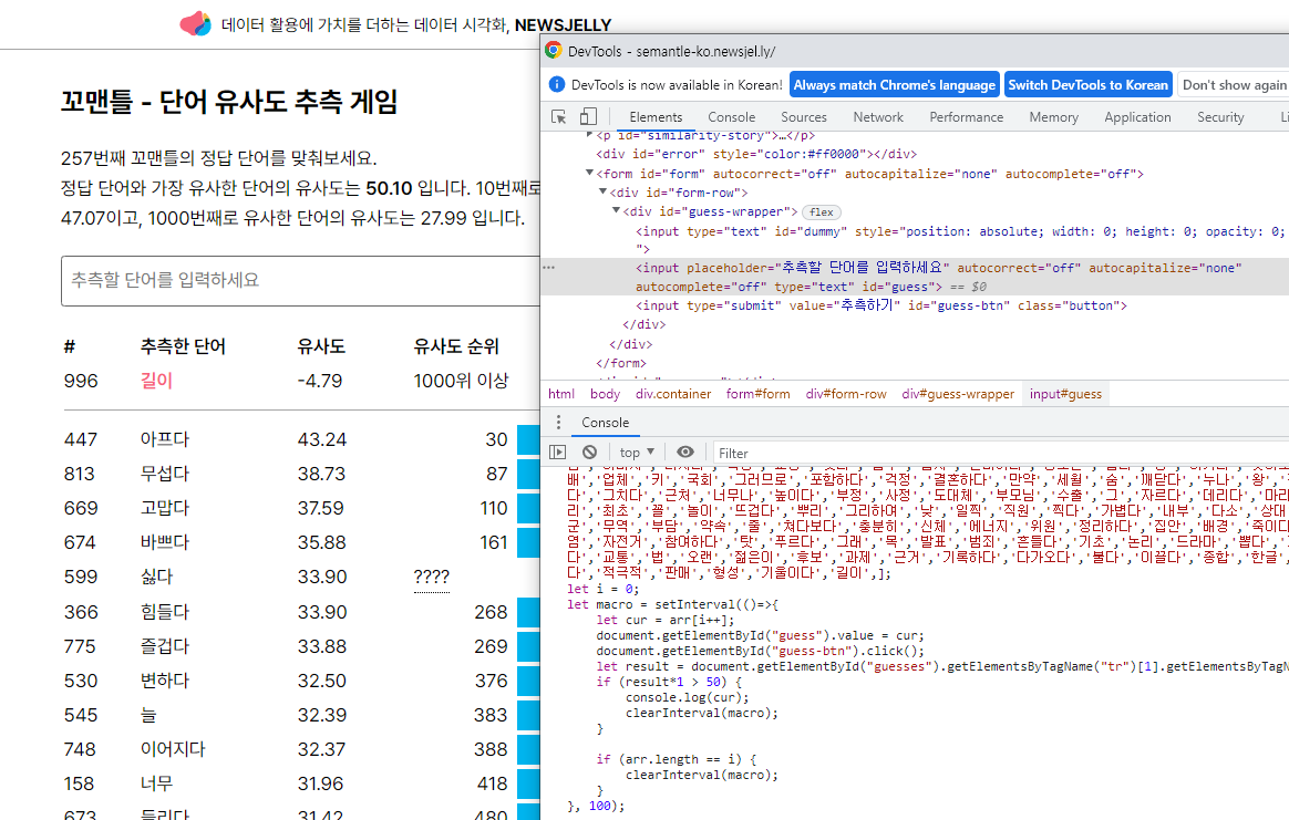 4. 후배한테 풀었다고 자랑하기 위해 재미로 하긴 했는데, 매번 서버로 쏘는걸 보니 저 회사 서버에 무리가 갈 것 같아서 앞으론 안할꺼다. 동일한 이유로 코드는 올리지 않는다.