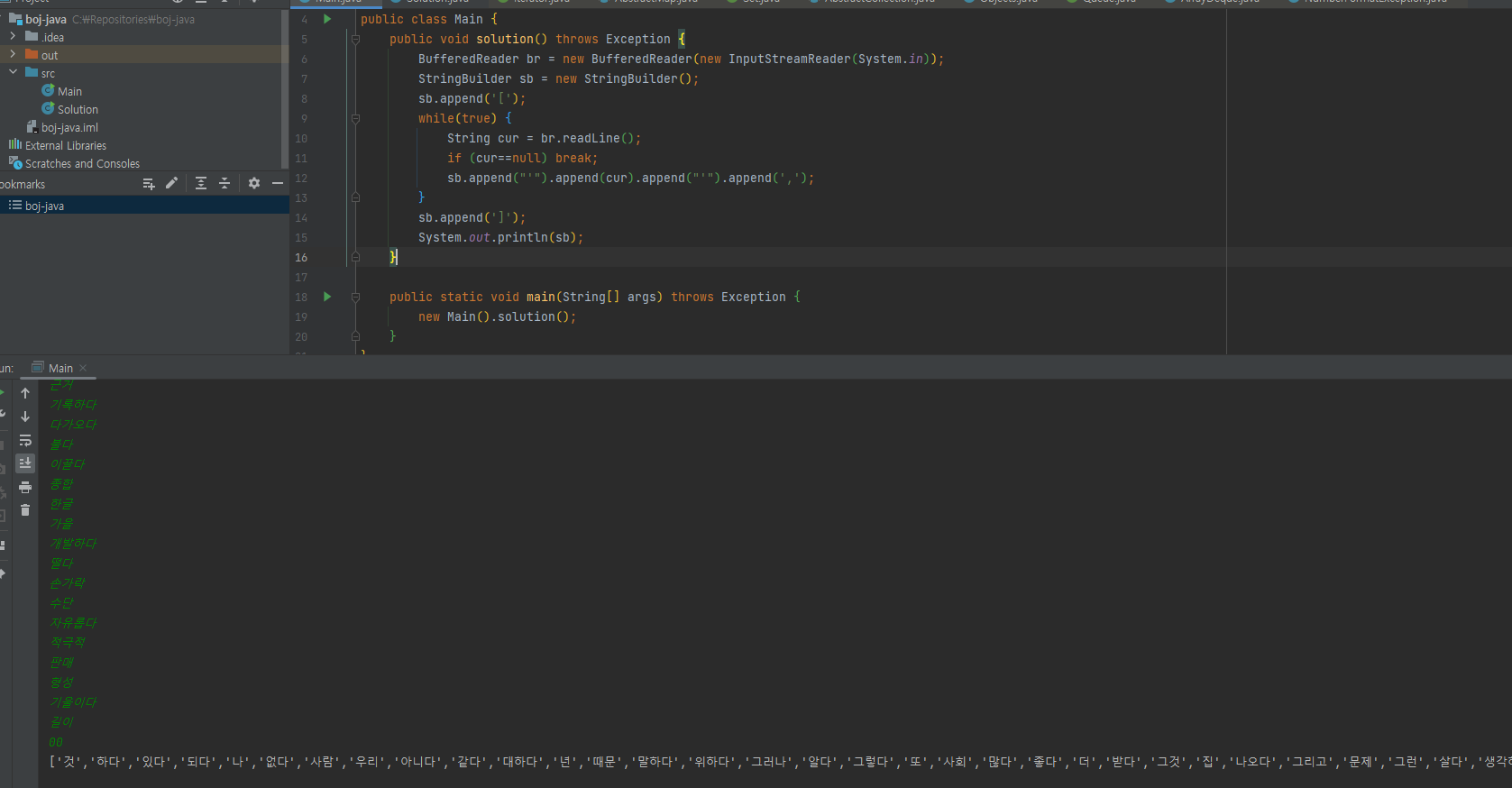 1. 데이터는 Wiktionary에 있다고 했다. 우선 그걸 파싱해서 js의 배열 형태 코드로 만들어주는 자바 프로그램을 짰다.