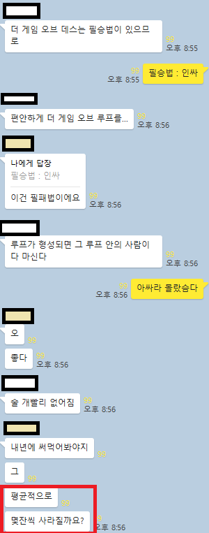 생각보다 막 ㅗㅜㅑ한 결과는 아닌 것 같다. 대강 0.5잔에 수렴하는듯. 다만 검증은 안해봤다! 아 그리고 술 마시고 싶은 사람은 자기 자신을 고를 경우 바로 사이클이 생기므로 마실 수 있다.