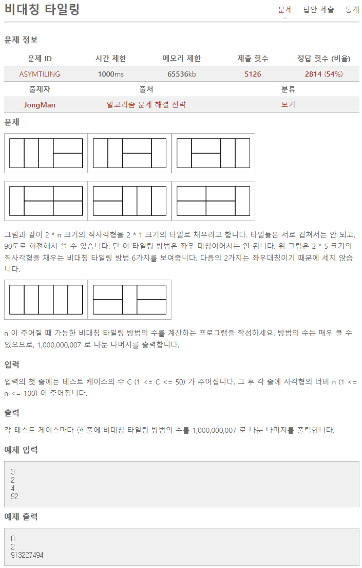 즉, dp[n]에서 dp[(n-1)/2] 를 빼주면 된다! (대칭인 경우를 빼면 되므로)