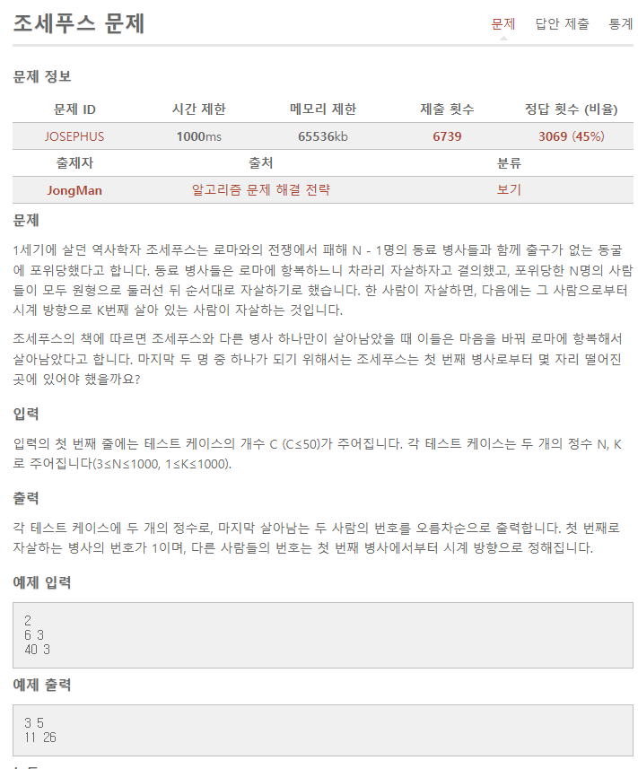 문제 : aoj-JOSEPHUS