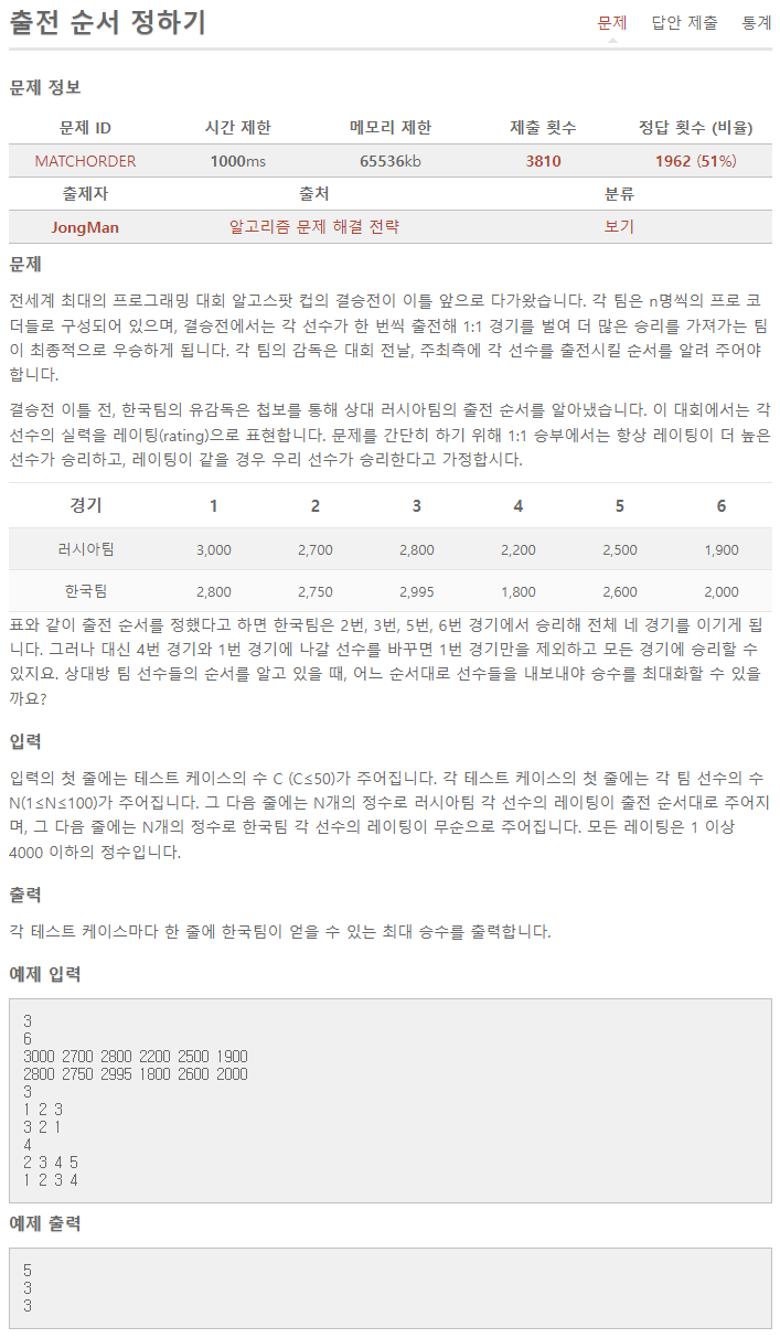 1. 러시아와 한국 팀이 1:1로 매칭이 되긴 해야 한다.