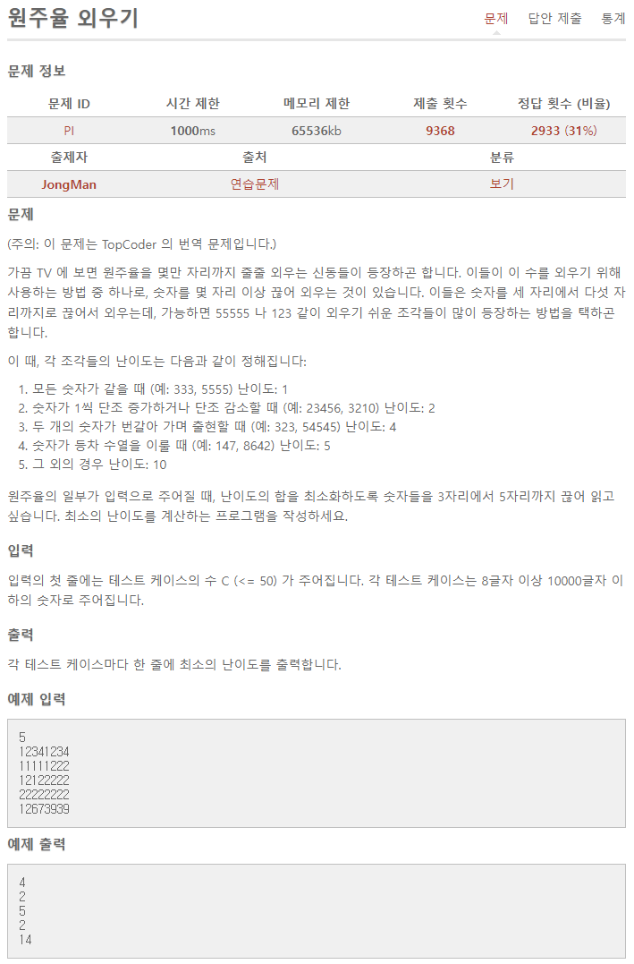 각 테스트케이스에 대해 dp[x] 를 x번째 숫자까지 표현하기 위한 최소 난이도라 정의하자. 저 정의대로 구할수만 있다면 답은 dp[문자열 길이] 가 될 것이다.