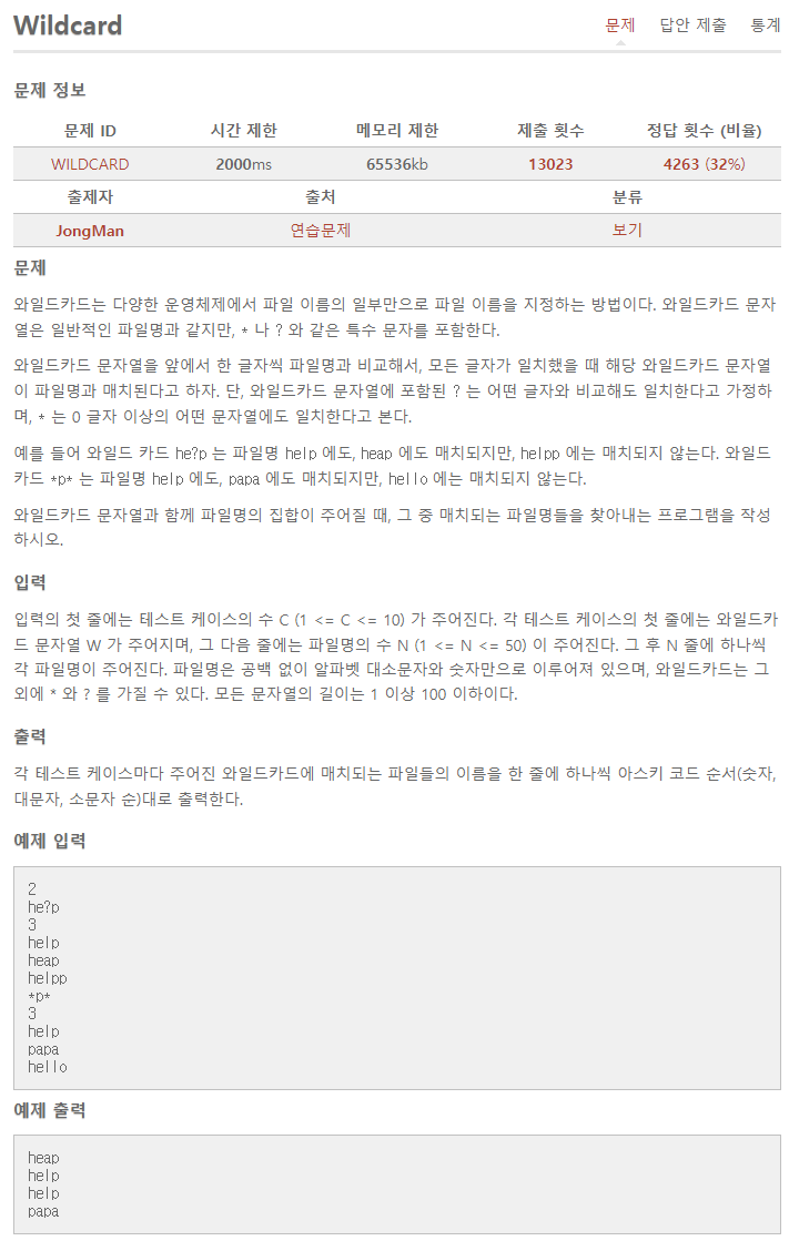 문제 : aoj-WILDCARD