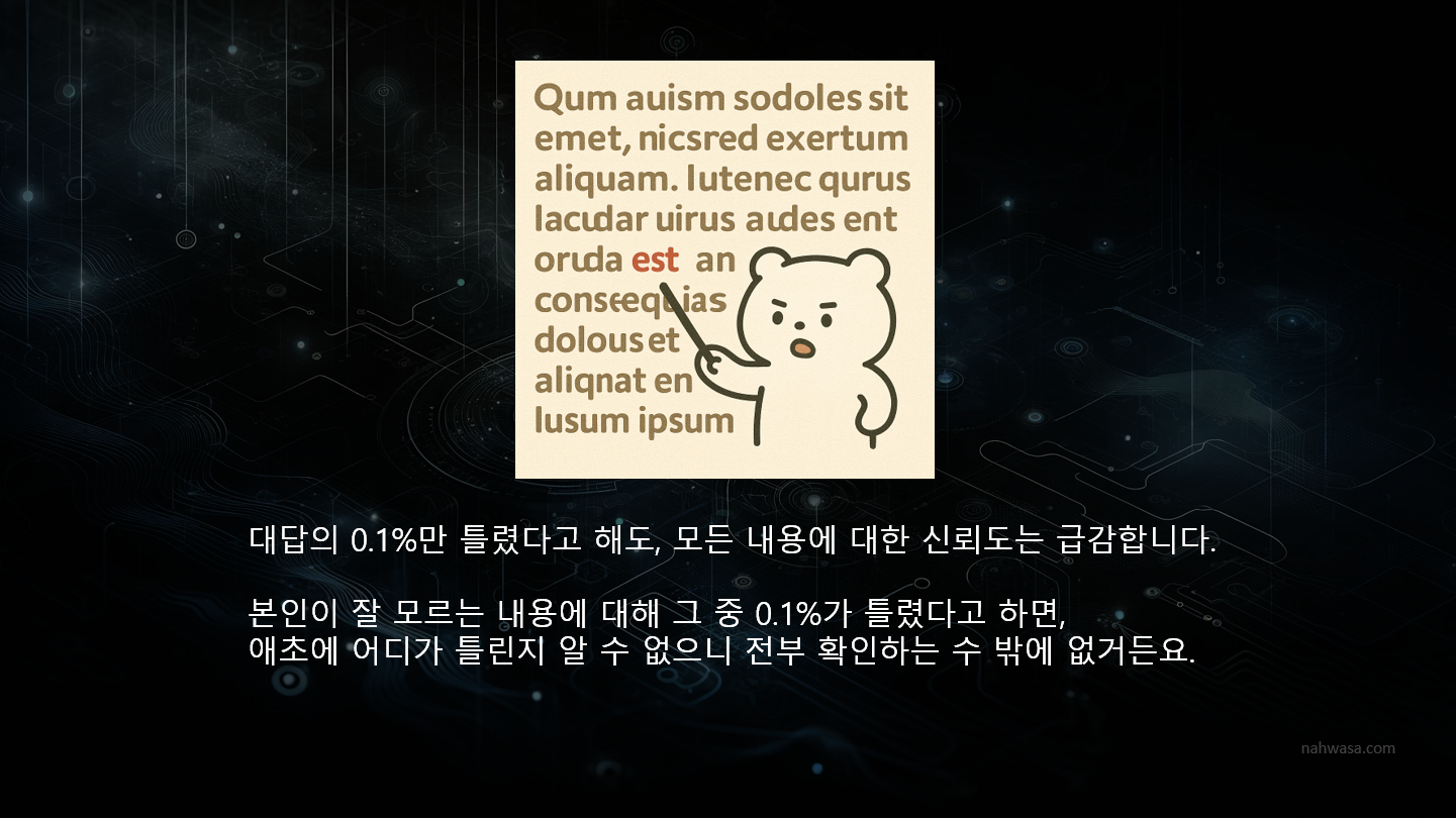 왜냐하면 본인이 잘 모르는 내용에 대해 질문하고 받은 답변 중 0.1%가 틀렸다고 하면,