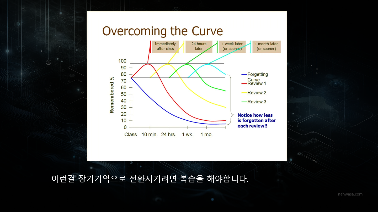 물론 전통적 방식에서도 좀 더 빠르게 장기기억으로 전환시키는 효율적 방법들이 있습니다.