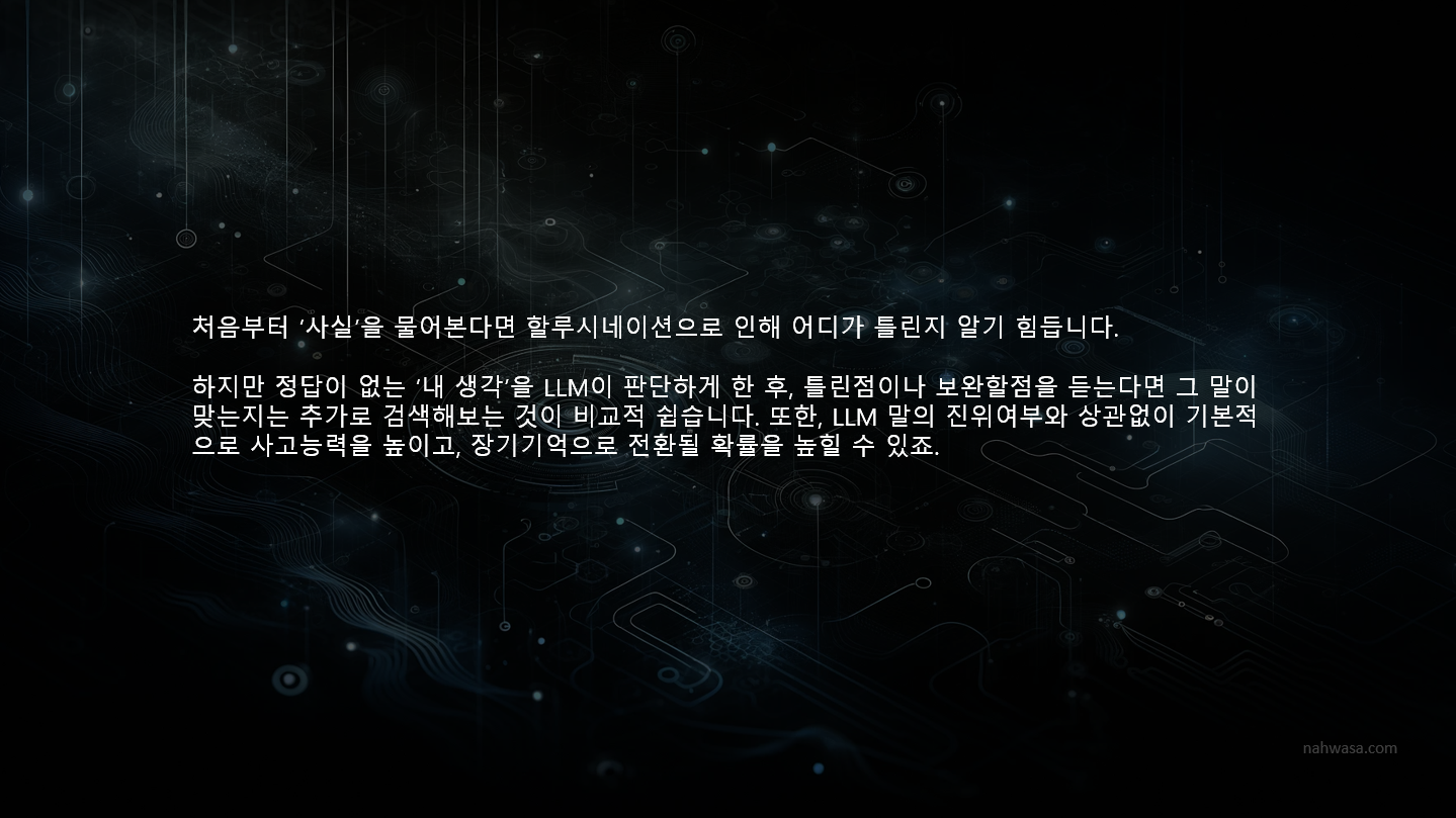 내가 질문하고 '사실'을 LLM에게 답하게 하는 것 보다,