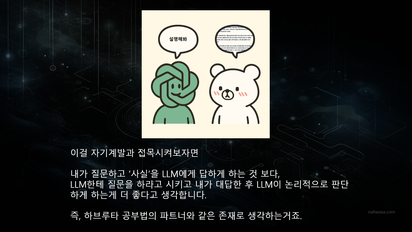 즉, 하브루타 공부법의 파트너와 같은 존재로 LLM을 바라보는거죠.