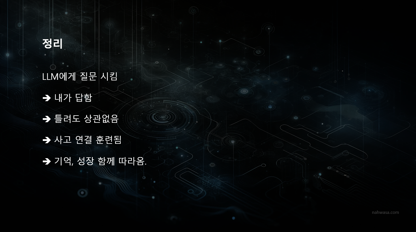 질문은 LLM이, 답은 내가 - LLM을 활용한 사고확장 자기계발 방법 추천 (Prompted by AI, Answered by Me)