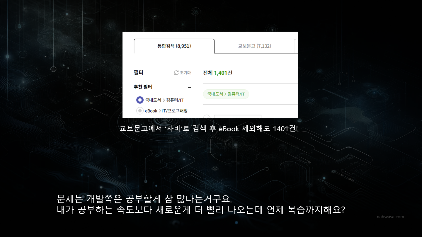 자바로만 검색 후에 eBook 제외해도 1400권이 나오네요. 다른 분야까지 하면 뭐 몇만권은 가볍게 넘을껍니다.