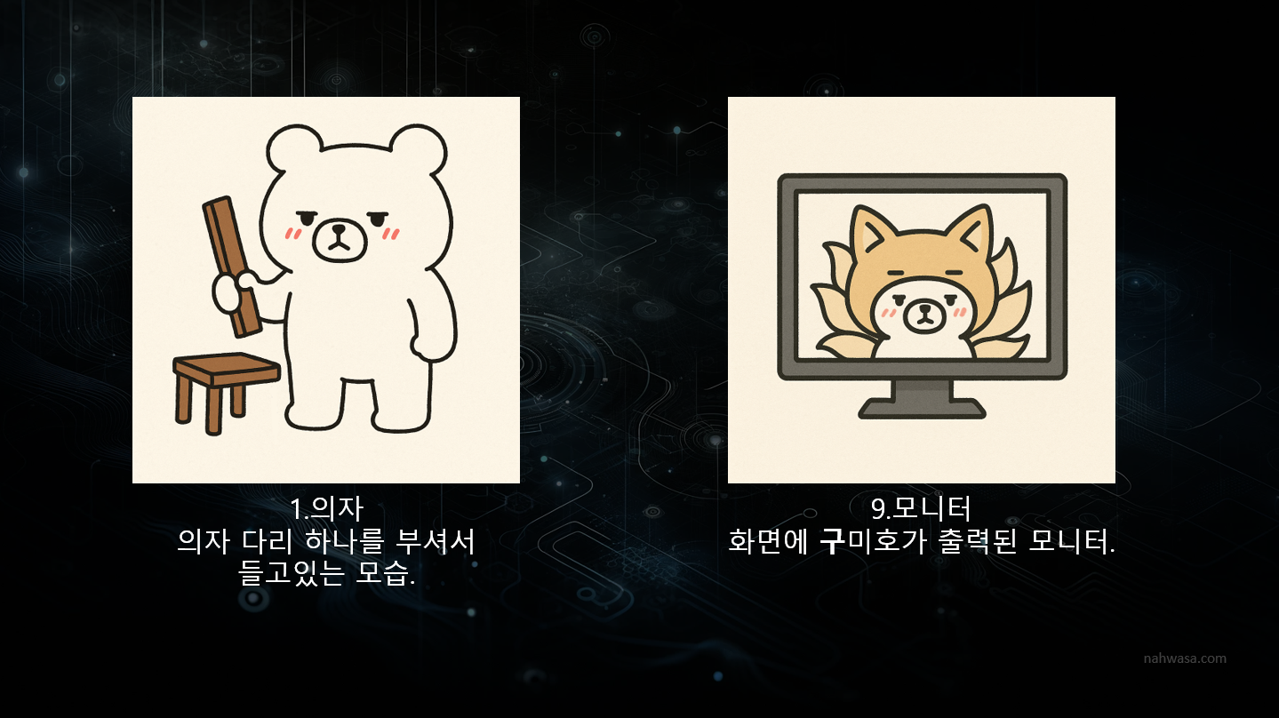 외운 후에 "오징어는 몇번이었어?", "10번은 뭐였어?" 이런 질문에 답할 수 있어야 합니다.