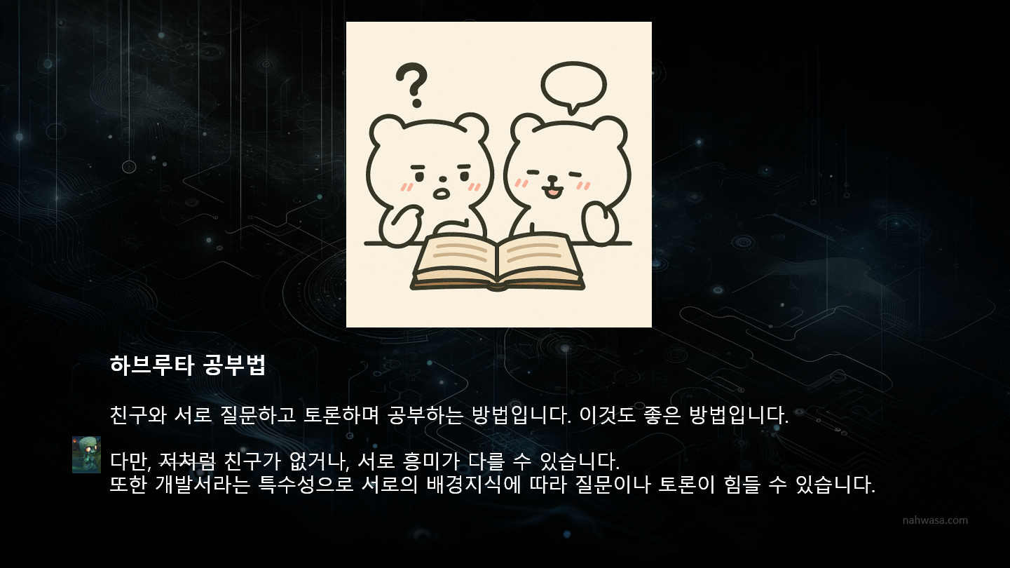 친구와 서로 질문하고 토론하며 공부하는 방법입니다. 물론 이것도 좋죠.