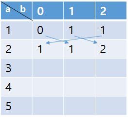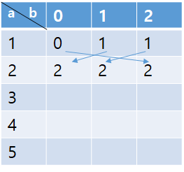 2.1 a=1일 때의 결과에서 0을 더해주는 경우 따로 b값이 변경되지 않으므로 그대로 내려오면 된다.