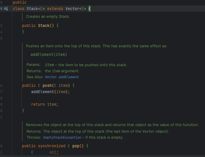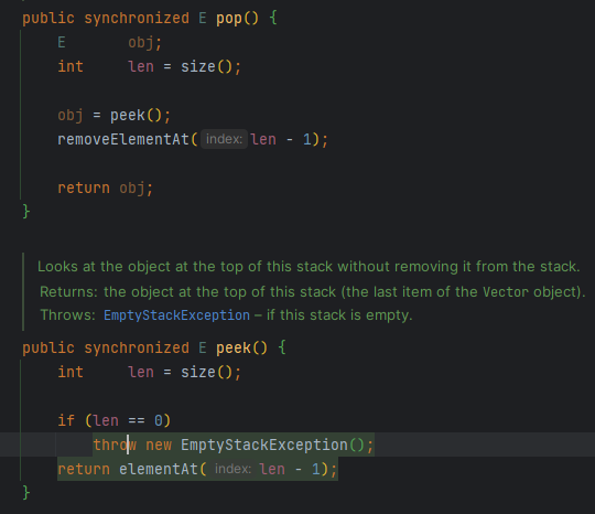 이건 Stack이 아래와 같이 Vector를 상속해 구현했기 때문이다.