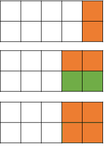 dp[x]를 x번째 열까지 타일을 놓는 경우의 수라 하자. dp[5]의 경우 아래 그림처럼 dp[4]에 2x1 타일을 놓는 경우와, dp[3]에 1x2 타일 2개를 놓는 경우, dp[3]에 2x2 타일을 놓는 경우가 있을 것이다. 그래서 dp[i] = 2*dp[i-2] + dp[i-1] 을 각 열에 대해 순서대로 계산해주면 된다. 최종적으로 답은 dp[n]이다.