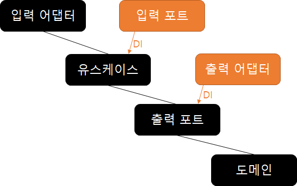 이 때 입력 어댑터에서는 유스케이스만을 사용해서 내부에 접근 가능하다. 저기에 입력 포트를 두어야할지 유스케이스를 두어야할지 좀 고민했는데, 추상화 계층인 유스케이스를 입력 어댑터에 두는게 맞다고 생각되었다.