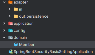 (config는 스프링 시큐리티 등의 세팅인데 헥사고날 구조에서 별도로 들어갈 만한 곳은 없는 것 같아서 그냥 별도 패키지로 두었다.)