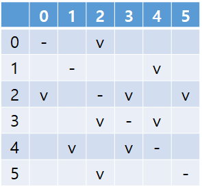 그리고 간선정보는 다음과 같다. (예를들어 1행 4열의 v는 idx 1과 idx 4가 인접함을 뜻한다.)