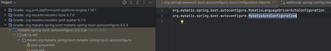 우선 설정한 옵션은 mybatis-spring-boot-autoconfigure에서 AutoConfiguration.imports에 등록된 MybatisAutoConfiguration에서 등록되게 된다.