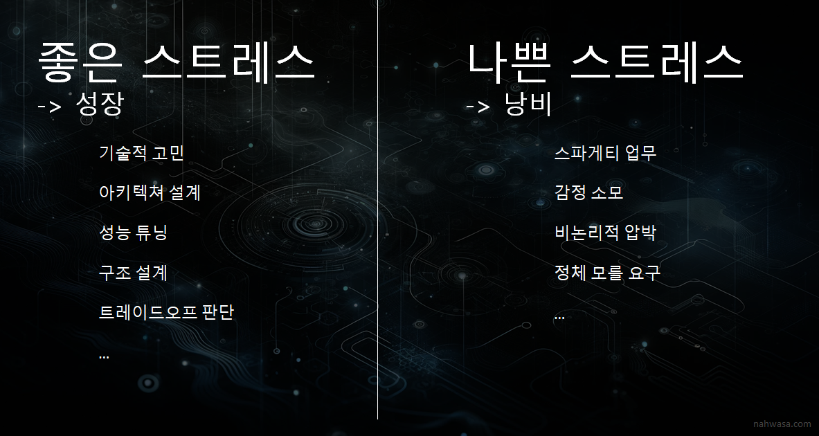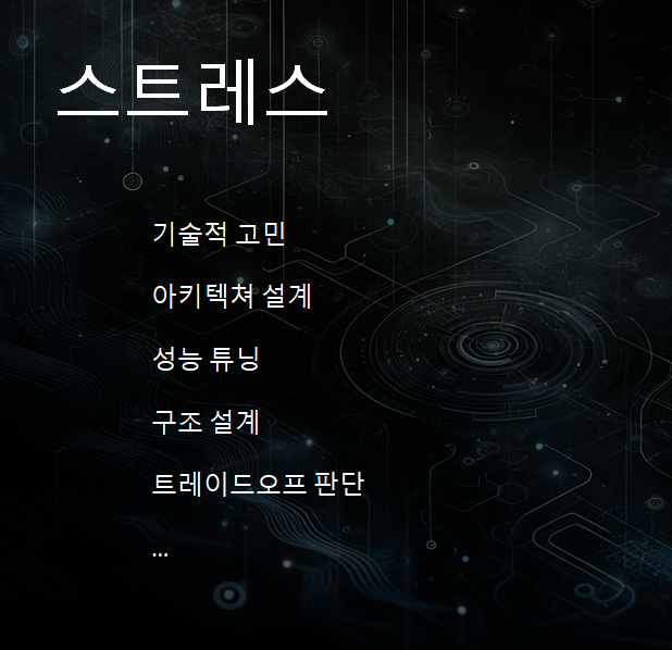 개발자는 기술 전문가 입니다. 개발자가 받을 스트레스는 저런 것들이 있죠.