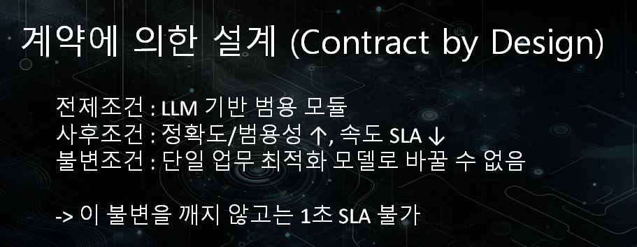 이 시스템이 유지해야 하는 아키텍처적 철학이 있습니다. 이 불변을 깨지 않고는 1초이내의 속도 SLA는 불가능한 상황이죠.