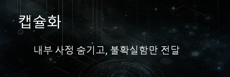 외부는 ‘결과’만 알면 됩니다. 내부 구현(사정)은 숨겨도 됩니다.